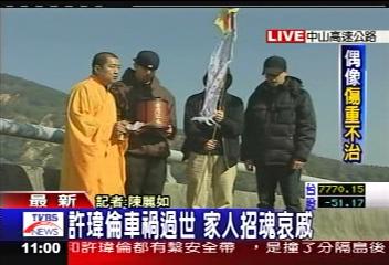 警察为了配合家属招魂,特地开道在现场交通管制,封锁了外侧车道长达1公里,还好招魂仪式相当的顺利,许玮伦的弟弟只找一次就成功,要带着姊姊离开这个伤心地。