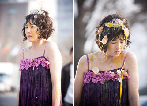 金善雅最近在《City Hall》制作发布会上说:“这辈子还没挨过这么多鸡蛋的打。一般我不会哭,可那天无数个鸡蛋打在身上后,不知怎么就哭了。脸、脖子,从头到脚都肿了,现在想来也很后怕。”