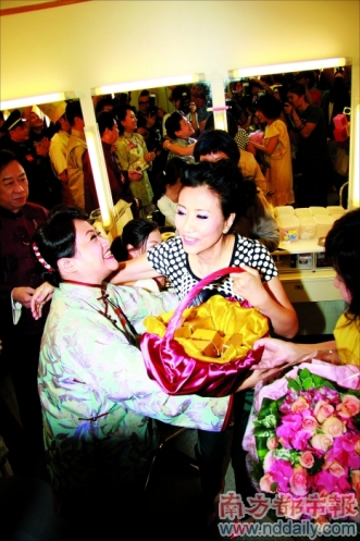 尽管前天新郎哥已经火速赶往横店拍戏,但单独出席活动的阿姐显然心情未受影响,短袖卡通T恤、翡翠绿长裤配红色高跟鞋打扮的她显得相当轻松休闲。接到无线副行政主席梁乃鹏送上的恭贺卡片时,她更笑逐颜开,卡片别出心裁地绘有两人的卡通形象,造型更神似二人之前透过TV B发放的结婚照,阿姐大赞“画得真像,一定要把它带回家摆起来”。梁主席还送上全球最小流动投影机作贺礼,希望阿姐和家英哥可以随时随地记录幸福生活,同时不忘打趣道:“两年前我给Liza(汪明荃)颁过文学博士,算是大登科,今天她洞房花烛,就算是小登科,恭喜恭喜!”还反复叮咛日后叫阿姐“罗太”,阿姐一定要答应。