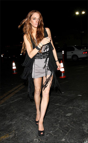 林赛·罗韩热裤配黑色透视装 变身性感精灵(图)