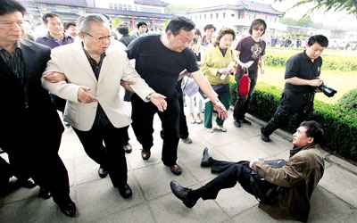 八宝山工作人员一度与希望提前进入厅内的群众、媒体发生了摩擦。为此,八宝山增派了数十名保安,拉起警戒线,五人一排,严密把守告别厅大门。
