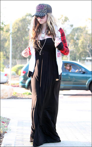 昨日(5月26日)摇滚小天后艾薇儿外出有外,开着自己的车,十分帅气。当天身着优雅黑裙的艾薇儿显露出这位摇滚小天后少见的温柔性感,头顶上带着棒球帽,外面搭配棒球服,混搭风格十分不错,让整个人又可爱小恶魔起来。