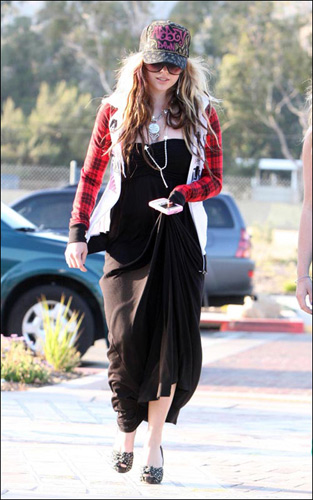 图文:艾薇儿臃肿出门随行者众 以手护肚疑怀孕