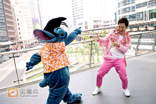 图文:庾澄庆一身粉红携卡通公仔闹市跳热舞(3)