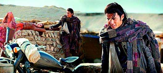 片场等待的时间,周杰伦不麻烦人,自己会打点得好好的。除了从台湾跟着他的几位助理,为避免疯狂粉丝追星,又另外雇了两位大陆保安,其中一位外形特殊,被武术指导程小东拉去客串一角,杰伦则对自己身边的人能当明星,相当得意。