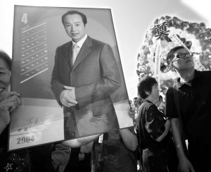 此时东大厅门口已经挤满了人,央视印制的悼念罗京生平的印刷品很快就分发一空。除了北京的群众,还有来自东北、山西太原、浙江温州等地的热爱罗京的观众,比如来自温州的一家三口,听说罗京去世的消息就立即动身来到北京。在307医院的灵堂悼念后,又来到八宝山送罗京最后一程。还有王东宏先生,他是罗京在酒仙桥二中的同学,也是校篮球队的队友,曾经合力获得了北京市中学生篮球比赛亚军。虽然多年失去联系,但是听说罗京去世后还是特意来到八宝山送别罗京。