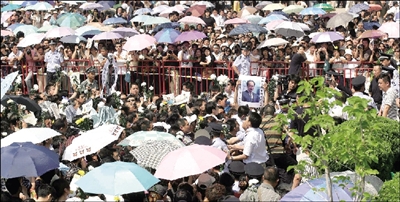 央视台长焦利、前任台长杨伟光,崔永元、水均益、赵忠祥、白岩松、张泉灵、邢质斌、张宏民、李瑞英、董卿、王小丫等央视主持人均着黑衣现身,表情凝重。此外,蔡明、毛宁、濮存昕等演艺圈明星也来到现场。