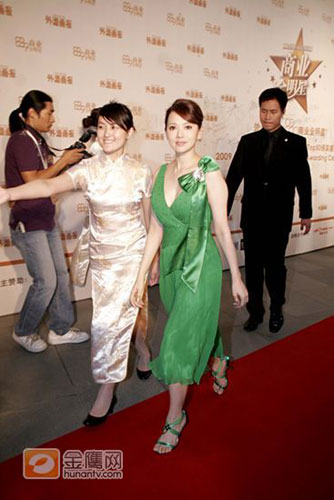 图为伊能静,绿色V领裙出场,十分抢眼。