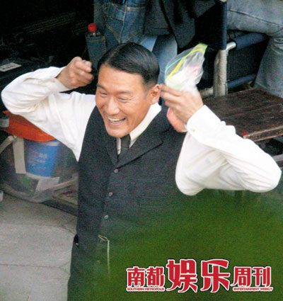 影帝梁家辉在片中扮演“革命党”,西装革履文质彬彬,比黎明演的“六义士”神气得多,可不知道为什么“鬼上身”,这位一贯文质彬彬的影帝却在片场抓耳挠腮,像是得了“多动症”。梁家辉不愧是影帝,做起怪动作来,也是花样百出,一时“双风贯耳”,一时“指南打北”,还一直拎着个苹果跑来跑去,惹是生非。同样是实力派演员,内地的“十三燕”王学圻老师的表演要稳重得多,在片场始终显得气定神闲。