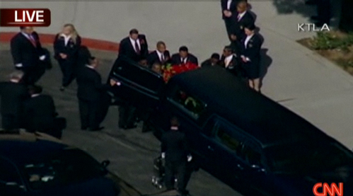 中新网7月8日电 CNN消息,迈克尔.杰克逊的私人葬礼仍在进行中,但杰克逊遗体已经装上灵车,从葬礼森林草坪墓园运至斯台普斯中心,整个行程大约30分钟。