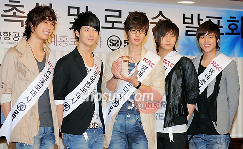 中新网7月14日电 据“朝鲜日报”消息,13日,韩国人气偶像组合SS501被任命为韩国航空公司的宣传大使。当天,SS501的成员金贤重、金亨俊、金圭钟、朴政民及许永生出席了在首尔金浦国际机场举行的韩国机场公司形象宣传大使任命仪式。