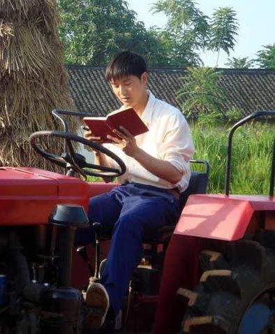 "雷锋"新剧照:田亮戴红领巾读报 着装老土(图)(3)