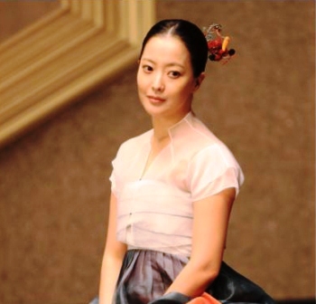 在这次广告拍摄中,金喜善身穿韩服,仪态端庄,雪白的肌肤吸人眼球。