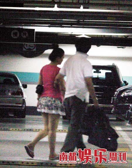 某天晚上9点左右,记者意外在丽都商场附近发现了王岳伦的汽车,刚认清了车牌,就看见王岳伦和一位大腹便便的女士出现在车前,迅速上车,而停车的地方光线太黑,无法拍照,但记者还是认出那位怀孕的女士就是李湘。王岳伦的汽车开得很慢,显得小心翼翼,20多分钟后才回到公寓车库,汽车停稳后李湘才有点吃力地下了车。记者看到怀胎7月的李湘与昔日荧屏上明丽动人的形象几乎判若两人,当天没有化妆的李湘一脸倦容,皮肤暗淡无色泽,身材臃肿,腹部凸出,胸部下垂,可能因为天气闷热,当天李湘竟穿着一条超短裙,更衬托出她的身材“走样”。在李湘身边的王岳伦显然对妻子非常照顾,不时地搀扶李湘一把,两人缓缓地走到电梯间门前,王岳伦小心地为李湘开门,似乎嘱咐李湘步子“慢点”。在回家的短短过程中,记者感觉到王岳伦对妻子照顾入微,而李湘似乎不太开心,像是一个受了委屈、需要被人呵护的小女孩。