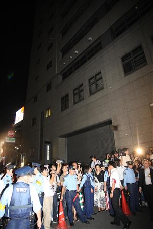 8月8日晚,东京涩谷警察署门前聚集着大批记者,等待着被逮捕的酒井法子的到来。
