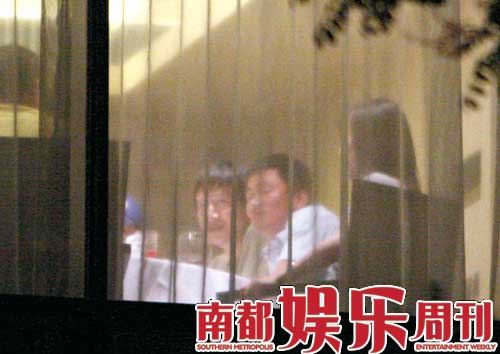 王宝强和女友上了酒店二楼的一个单间,记者从楼下仰望窗户,发现当天和他一起吃饭竟还有《士兵突击》中的老搭档张国强和陈思成。一场饭局来了“钢七连”中的三大主力,气氛不热烈都不行,大有不醉不归的架势。王宝强连连碰杯,很快就“脸红脖子粗”,但他毫不在意,有酒必干,逢酒就敬,而他身边的女友大概看到是老友相逢,也不阻拦,至临近席终时,王宝强已经身体打晃,最后趴在桌子上昏昏欲睡。出门时王宝强对“战友”们的热烈告别动作,已经无力招架,耷拉着头,脚步踉跄,只知道紧紧抓住女友的手,这可能是他最坚定的意识,而女友则一直微笑着与好友作别,帮王宝强撑住场面。上车后王宝强一下子就躺在了副驾驶的位置上,他的女友掌握方向盘,汽车稳稳当当地回到了公寓的地库。下车时王宝强已经体力难支,站立不稳,他一下子倒在女友的背上,双双紧紧地吊住女友的脖子,由女友又背又拖地带他进了电梯间一起上楼,这一时刻王宝强就像是一个淘气的顽童,而他的女友则对他满怀柔情和爱意。