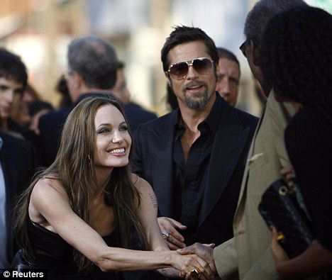 皮特夫妇情侣装秀恩爱 朱莉添性感新刺青(组图)(4)