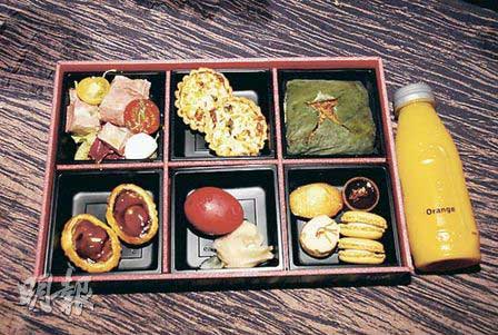 昨日到场采访的传媒,“两餐”也有主人家照顾,中午送来酒店餐盒,有三文治与甜品小食,晚上的饭盒则有和牛刺身、鲍鱼挞,以及一只红鸡蛋,价钱600多元。