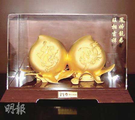李兆基为孙女李晞儿(Hayley)设下百日宴,主人家收到不少别具心思的礼物,包括徐子淇父亲旗下的“金至尊”送上巨型足金金桃贺礼。