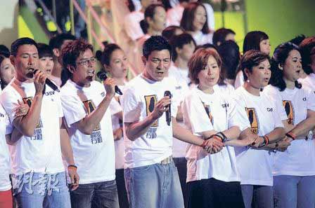中新网8月18日电 香港演艺界总动员为台湾水灾筹款,昨晚在亚洲国际博览馆举行“8.8水灾关爱行动”,逾300香港、台湾、内地艺人为台湾灾民放送爱心。40小时的赈灾节目逾2亿观众收看,向全球华人发出爱的呼唤。四大天王同台原本是昨晚的重头项目,刘德华、黎明 、郭富城与张学友皆有到场,不过,黎明匆匆到场打招呼后便赶着离开,结果四大天王未能同台呼吁。