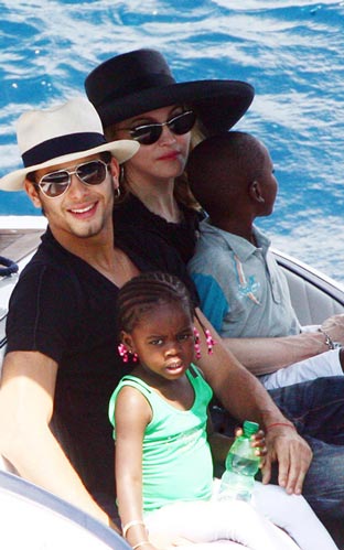 麦当娜完成波兰的演唱会后,就拉家带口地飞抵意大利著名旅游海港小镇波托菲诺。麦当娜和小男友先是在当地著名餐厅吃饭,引来路人围观,随后又带着孩子乘船游玩。约瑟·鲁兹将麦当娜和孩子们都搂在怀中,大献殷勤,一家人说说笑笑,非常和睦。