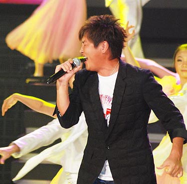 8月19日,“庆祝新中国成立60周年‘向祖国汇报’重点国产影片推介庆典” 在北京京西宾馆举行。孙楠在活动最后压轴出场,激情演唱献礼影片《建国大业》主题曲。最近盛传孙楠与买红妹离婚后又再婚,但似乎是为避开媒体炒作,记者并未发现孙楠将婚戒带在手上。