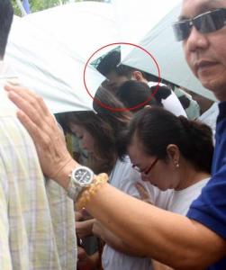 连日来“藏身”朱宅的华仔,在朱父出殡之日终“破功”,虽然他“被逼”出来面对众人,但始终严守最后一道防线,朱家亲友采用“伞遮人”政策(全体打开雨伞),让华仔混在亲友当中,并由一名高大印裔保镖挡在其身边,一直用手压低华仔的头,让他由头到尾“没脸见人”。