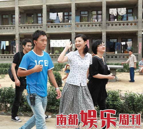 此刻的小区还是地震前的模样,冯小刚介绍,过几天将会在影棚里用安全的材料原样搭建震后的小区,那是一个非常大的工程,整个地面都将做成布满沟壑的样子。
