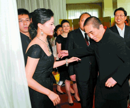此外,范冰冰身穿今年流行的垫肩装配黑色皮裙出场,不时撩发捂嘴做娇媚状希望引起张艺谋的“关注”。有消息称她目前正在和张艺谋“密谋”合作机会。