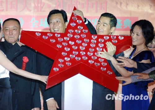 图为众主创为影片首映启动水晶灯。中新社发 李学仕 摄