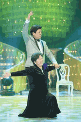 能和赵忠祥合舞,柏阿姨非常兴奋:“观众们只要看到赵老师主持,什么家庭都不会吵架了。赵老师是我心中的偶像,能和赵老师跳舞,今晚就睡不着了。”平时跳惯了健身舞,这段国标舞对柏阿姨来说还是稍有难度。对此,赵忠祥对柏阿姨说:“你放心,你是柏妹妹,我不会让你跌倒。”有了这句话,柏阿姨放下心来,两人跳得喜笑颜开。