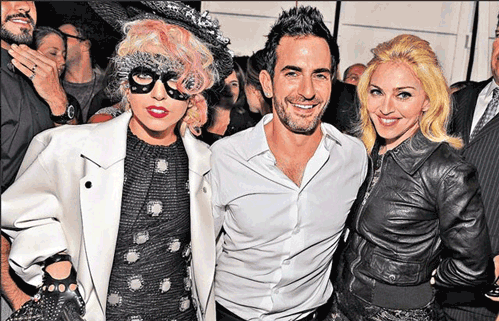 麦当娜和 Marc Jacobs在 LV广告曾有过合作,昨日她携手巴西嫩模男友Jesus Luz齐齐捧场,坐在第一排看足全场, Lady GaGa就用一贯浮夸打扮抢镜,短裙、墨镜、手套、大帽,与一头粉红假髮, 不过Lady GaGa看得津津有味,时装秀结束后她更起身拍掌。