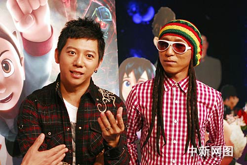羽泉哥俩不仅来到活动现场,还来了小时候看过的《阿童木》连环画,这本1982年出品的原版连环画勾起了在场很多人的儿时回忆。兄弟俩各自要在片中一人挑战两个角色,感到压力不小。羽凡颇有兴致地向大家介绍了“变声”秘笈,坦言唱歌的经历让他们可以利用民族、美声、通俗演唱方式为角色配音。其中,为一个小机器人配音时他便采用了民族唱法的发音方式。随后,两人还即兴来了一段片中喷喷和刮刮的对话,两个大明星手舞足蹈的样子把两个小机器人演绎得非常生动。当被问及为这部动画巨制配音时的片酬问题时,羽泉则笑称他们是出于感情为这部影片献声的。最大初衷是满足他们童年时的梦想,因为他们也都是阿童木迷。