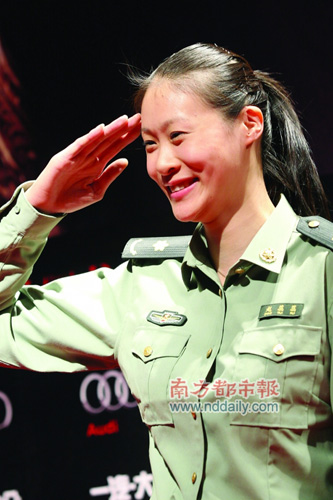赵蕊蕊 有别于其他名人的豪华艳丽,赵蕊蕊一身军装,飒爽英姿,清新自然。