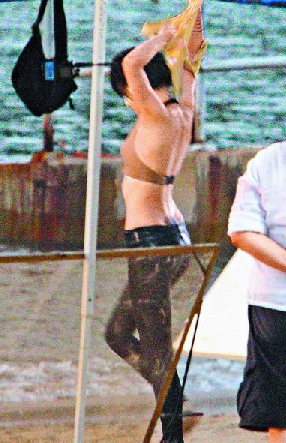 台湾“苹果日报”消息,大S少了男友羁绊,演出尺度越来越火辣,5日她与谢霆锋在香港南湾拍片,她顶着短发与烟熏妆现身,造型令人耳目一新,接着一场落水戏,只见她在镜头前从黑色短T恤逐层扒开,一路脱到肉色背心,后来更脱到剩肉色内衣下水。