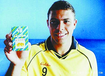 巴西足球明星罗纳尔多在2003年9月,国内媒体大炒的“皇马中国之行”结束不久,某喉宝的新广告开始在央视等媒体大规模投放:随着罗纳尔多凌空射门,熟悉的声音 “×××喉片,广西×××!”响起,接下来的画面是肥罗拿着一盒该品牌喉片冲观众笑。