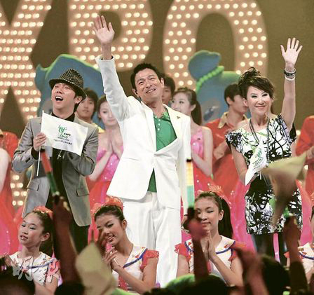 中新网10月15日电 刘德华 、李玟 、梁咏琪 前晚出席上海举行的《倒数200天迎世博优秀歌曲演唱会》,华仔特别挑选一套代表世博色系白、绿、橙中的绿白配服装,获安排压轴演唱《母亲》、《微笑上海》两首歌。主持问他会否到上海参观世博会?他说大家需要他的地方就来,届时最想看到大家的微笑。