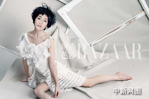 周迅登《时尚芭莎》封面 清新亮丽露香肩(组图)(3)