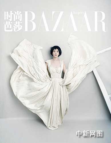 周迅登《时尚芭莎》封面 清新亮丽露香肩(组图)(5)