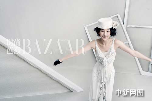 周迅登《时尚芭莎》封面 清新亮丽露香肩(组图)(6)