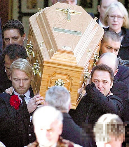 据英国媒体报道,10月10日在西班牙度假时猝死的“男孩地带(Boyzone)”成员史蒂芬·盖特利(Stephen Gately)的葬礼,于英国时间17日中午在爱尔兰首都都柏林的St Laurence O'Toole教堂举行。