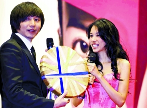 而莫文蔚昨日的装扮则和前段时间的翻唱专辑《回蔚》遥相呼应,都以桃红色为主色调。桃红色的束胸衣和镂空丝袜,加上黑色的短裙凸显了莫文蔚的性感本色,她也毫不讳言地说“我就是想招桃花。”