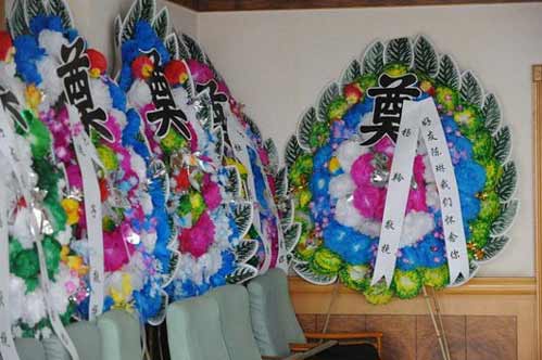 现场摆放着好友献的花圈换联。