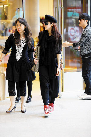 11月10日,范冰冰现身香港置地广场的Gucci专卖店。当天的范冰冰,黑色帽子时尚有型,一身休闲黑裙搭配黑色围巾,脚踏红色亮皮球鞋耀眼夺目,肩挎一个超大号的Gucci包包,虽然黑超遮住芳艳,但仍难挡星味四射。狂扫Gucci店后,意犹未尽的范冰冰又转战华伦天奴专卖店。