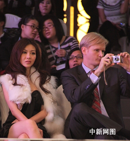 中新网11月17日电 巩新亮日前在某时尚品牌发布会亮相,身着黑色缎面小礼服性感妩媚,成为了全场的焦点。而在活动中,一直有位金发碧眼的外国帅哥陪同在巩新亮身边,两人在贵宾席看秀时常窃窃耳语,关系非同一般。
