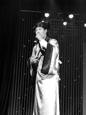 随后,小沈阳脱掉西装,露出了露背的衬衫,迅速换装成《倩女幽魂》中的宁采臣,并邀请一位女观众上台一起演绎。不过这个备受期待的新段子除了唱歌及与女观众互动外,并没有《大话西游》等旧段子搞笑,显得诚意欠奉。对于第一次观看小沈阳演出的观众来说,大多数对他的表现满意,但二次购票的观众则感觉小沈阳的表演不能值回票价。(记者 谢奕娟)