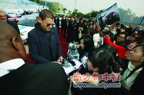 “来了!来了!”“天啊,是米帅!真是帅锅啊!”在人声鼎沸的广州国际车展琶洲会馆,《越狱》男主角温特沃什·米勒在四名壮硕保安的护送下,意外现身某品牌汽车展台,签名、合影、握手、拥抱,广州大打亲民牌,瞬间盖过众多香车美女的光芒。