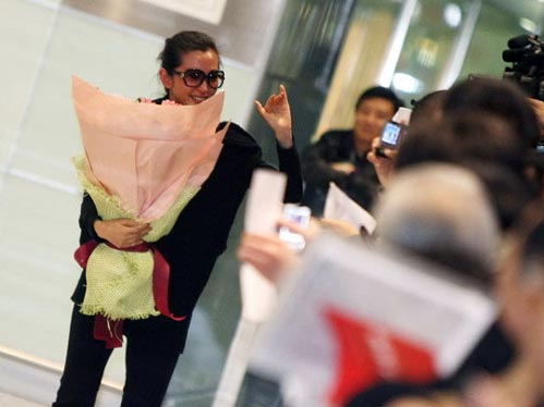 影后李冰冰捧金马荣归 机场飚泪熊抱影迷(组图)(5)