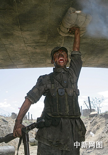 中新网12月4日电 由王宝强主演的反映战斗英雄董存瑞事迹的电视连续剧《为了新中国前进》,预计将于2010年年初登录央视一套。日前,一组战斗场面剧照曝光。片中王宝强穿梭于爆破场景中,危险程度可见一斑。让人感觉他拍戏真是“不要命”了。