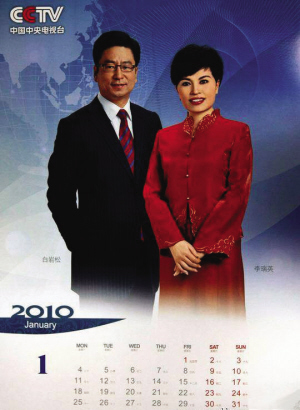 在各家挂历中,央视的挂历是最难看的,但它透露的信息也是最明确的——谁打头阵,谁就是一哥一姐。2010年挂历一共33位主持人入画,打头阵的是白岩松和李瑞英,他俩取代了2009年的朱军和董卿出现在1月份。这挂历一出来,央视一位不愿透露姓名的主持人马上表态:“白岩松现在几乎是央视主持的一面旗帜,地位、能力没有几个人能比。”